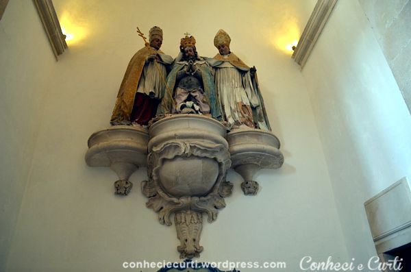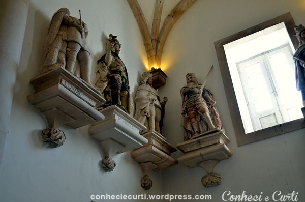 Na parte superior, nas paredes, estátuas representam os Reis de Portugal.