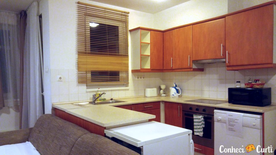 O nosso apartamento tinha dois quartos e sala e cozinha conjugadas, muito confortável.